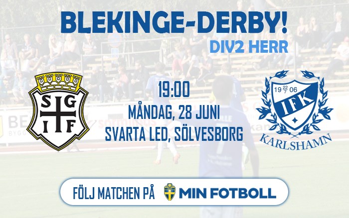 Imorgon måndag väntar ett Blekingederby i Sölvesborg på vackra Svarta Led! Matchstart 19:00 och nedan följer information från hemmaklubben. Föreningen har beslutat att släppa in 350 åskådare till matchen mot IFK Karlshamn. Entrén öppnar kl.18 och det är de första 350 personerna som passerar entrén som gäller. Pris: 100 kr/person och frikort gäller. Som åskådare åtar du dig följande: att sitta på anvisad sittplats enligt de riktlinjer myndigheterna lagt upp gällande allmänna sammankomster. Hålla avstånd till personer utanför ditt sällskap. Ett sällskap är max 4 personer. Stanna hemma om du har minsta symptom. Respektera dina medmänniskor. Välkomna! /Styrelsen SGIF