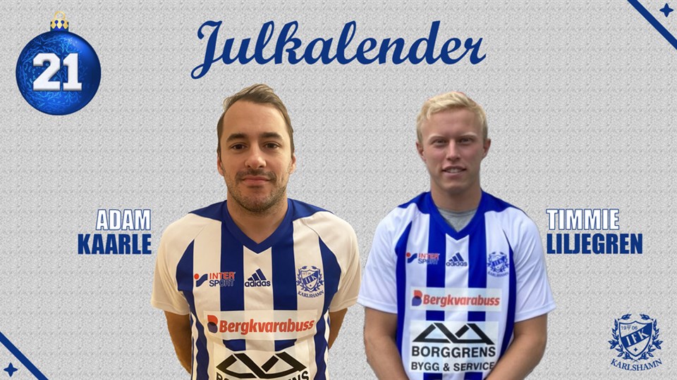 LUCKA 21 - Adam Kaarle & Timmie Liljegren I dagens lucka finner vi två rutinerade herrar, Kaarle och Timmie! Adam Kaarle Ålder? 33år Position? Yttermitt/Anfallare Moderklubb? Asarums IF Vad gör du när du inte spelar fotboll? Jobbar, umgås med mina barn och spelar Counter strike Bästa IFK-minne? Alla seriesegrar. Om du skulle likna dig vid en annan fotbollsspelare, vilken? Adama Traore Vilken är din favoritmåltid lagad av Kocken på torsdagar? Köttfärslimpan! ***** Timmie Liljegren Ålder? 25år Position? Innermitt Moderklubb? BK Union Vad gör du när du inte spelar fotboll? Jobbar, umgås med polare och spelar padel! Bästa IFK-minne? När Dea sjöng på sin inkilning och när vi gick upp i Div 2 Om du skulle likna dig vid en annan fotbollsspelare, vilken? Vet ej Vilken är din favoritmåltid lagad av Kocken på torsdagar? Köttfärslimpan!