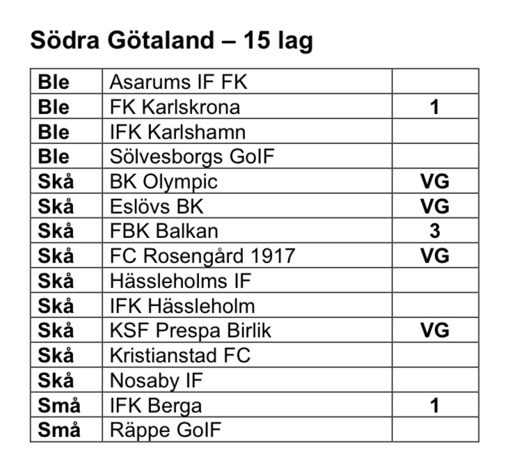 Seriesammansättning Div 2 Södra Götaland