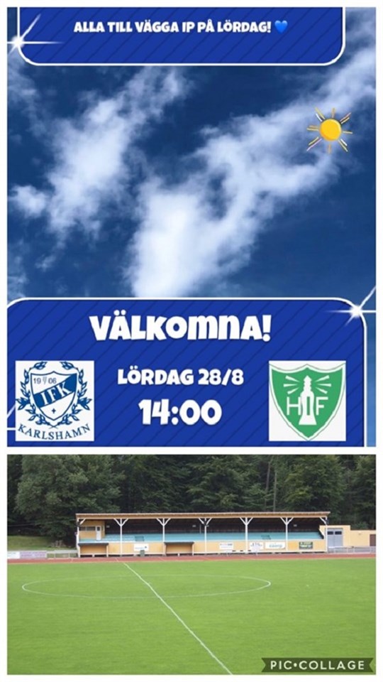 Hej alla IFK-vänner Det stundar en blåvit fotbollshelg! På lördag har vårt herrlag möjligheten att genom seger säkra seriesegern i division 3 och därmed avancemang till division 2. Klockan 14.00 vill vi fylla Vägga i blåvita färger och heja fram IFK i matchen mot Hörvikens IF. Kom med hela laget, ta med grannen eller kompisen! Fotbollsfesten startar dock redan klockan 11.00 då vårt duktiga utvecklingslag på damsidan spelar säsongens sista match i derbyt hemma mot Hällaryd. Tjejerna har redan säkrat seriesegern genom seger mot Karlskrona igår. Kom till Vägga och applådera deras insats i år. Ska det bli en riktig IFK-helg?! Välkomna till en hel dags fotbollsfest på Vägga på lördag!