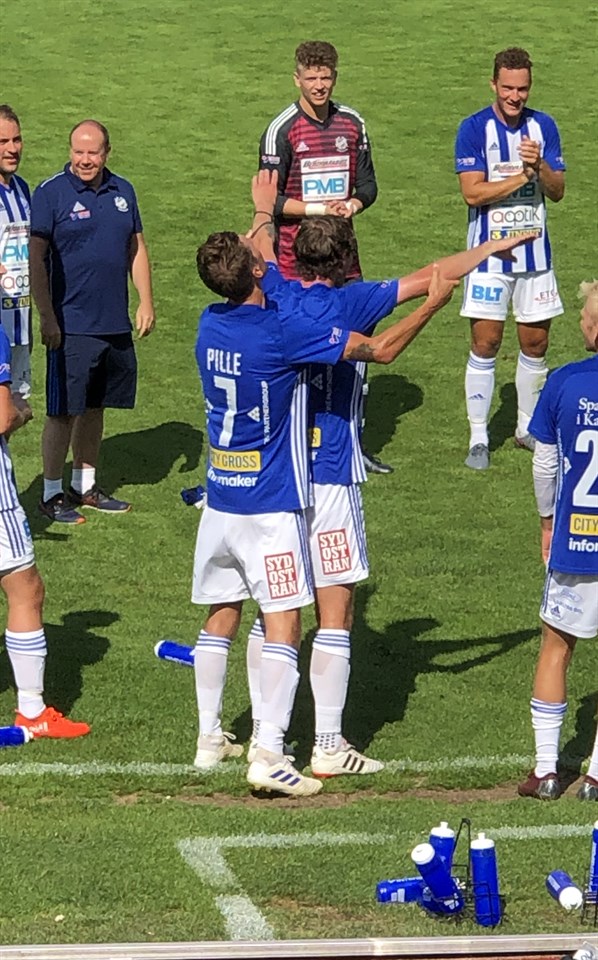 Att vinna en div.3 match med 9-2 ska egentligen inte gå. Och absolut inte mot Glömminge som normalt är ett jobbigt lag att möta. Hur kan det då bli så här? Mycket sitter bakom skallbenet självklart. När Kamraterna gör 5-1 tidigt i andra halvlek gav Glömminge upp totalt. I 63 minuten står det 8-1, men här började även IFK ta det väldigt lugnt. Annars hade siffrorna kunnat bli än större än 9-2. Men min sak är inte att analysera Glömminges insats utan istället lägga fokuset på vår egen insats. Taktiken var glasklar. Springa, springa och springa. Låter fantastiskt enkelt men faktum är att just detta är Glömminges största svaghet. Glömminge är med resultatmässigt en bit in i första halvlek då man först kunde kvittera till 1-1. Strax efter fick man en ny chans på straff som man däremot brände. Bägge dessa situationer skapades efter riktigt dåligt försvarsspel från Kamraternas sida. Annars var matchbilden från första minuten till sista en total dominans från IFKs sida. Ett rörligt anfallsspel gjorde att vi skapade chans på chans. Pille var tillbaka efter skada och visade upp både spelglädje och löpvilja. Många visade för övrigt upp dessa egenskaperna samtidigt som effektiviteten framför mål var hög. Spelarkritik ger jag mig inte in i idag. Däremot de unga killarna Lucas i målet, Machmoud o Noah Å samt Noah A förtjänar omnämnande efter bra insatser. Framtidsspelare som imponerar och som nu får speltid i div.3. Sju omgångar kvar att spela och kontraktet känns nu klart. Helt underbart att få leda laget utan press min sista tid i IFK. De övriga tre åren har kniven varit mot strupen in i omgång 22. Vi har hela tiden lyckats med vad vi eftersträvat och det kommer att vara en mycket nöjd tränare som lämnar över stafettpinnen. Men tro nu inte att det blir lugnt i höst. Jag kommer jaga livet ur killarna, för möjligheterna att nå en topplacering. Allt kan hända, och när vi spelar bra kan vi slå samtliga lag i den här serien. (förlåt, inte Sölvesborg). Nybro nästa helg ska bli intressant. Dem är på frammarsch efter femte raka utan förlust. ”Men ska vi hänga med i toppen så krävs seger”. Ett uttryck som Pille o Kalle älskar.:) //Sniff